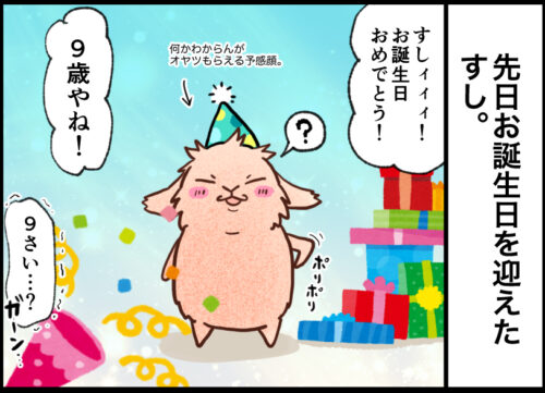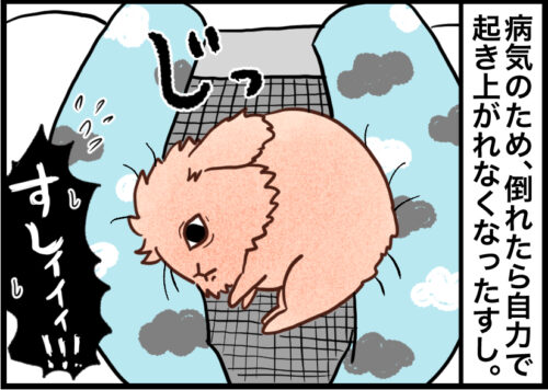 2026/01/23 病気の自覚がなさそうなすし。 漫画 写真 すし 【ウサギの漫画】人もウサギも慣れてきた感じがします。 READ MORE 2026/01/21 手術当日のこと。 漫画 写真 キュッキュ 【ウサギの漫画】キュ手術、6年ぶりです。 READ MORE 2026/01/15 とにかくはよ寝ます。 漫画 写真 すし 【うさぎの漫画】介護中の方たち、お疲れさまです。 READ MORE 2026/01/14 キュッちゃん、手術します。 漫画 写真 キュッキュ 【うさぎの漫画】すしに続いてキュッちゃんまで、、、 READ MORE 2026/01/10 年末年始の我が家。 漫画 写真 すし キュッキュ 【うさぎの漫画】年末年始はあっという間に終わりました。 READ MORE 2025/12/28 すしの症状。 漫画 写真 すし キュッキュ 【うさぎの漫画】すしががんばっています。 READ MORE 2025/12/17 うさぎと縄張り争いする人間。 漫画 写真 すし 【うさぎの漫画】すしに勝ちたい人間。 READ MORE 2025/12/07 最近のキュッちゃんのお気に入り処。 漫画 写真 キュッキュ 【うさぎの漫画】すごく執着して乗ってます。 READ MORE 2025/12/03 すし、9歳になる。 漫画 【うさぎの漫画】すし、ついに9歳になりました~~~!!! READ MORE 2025/11/14 知育玩具のその後。 漫画 すし キュッキュ 【うさぎの漫画】キュッちゃんには苦労なくおやつ食べてもらいたいらしい。 READ MORE 12›»